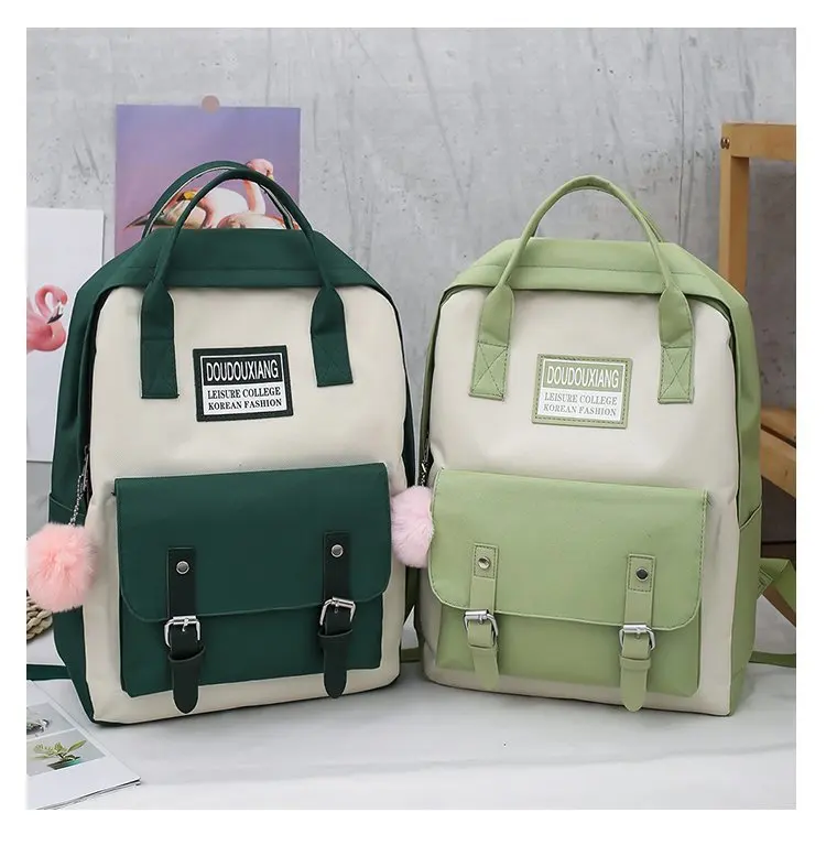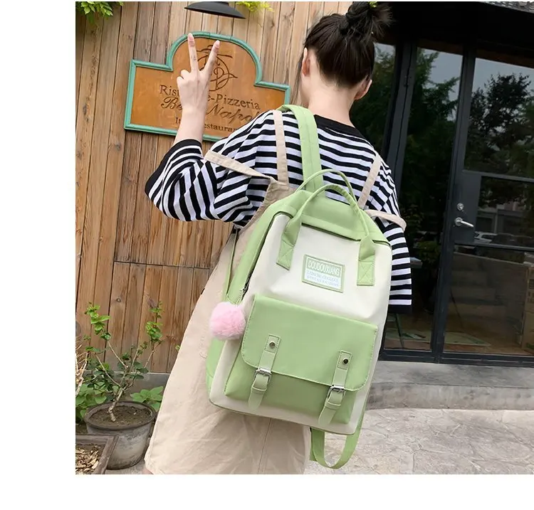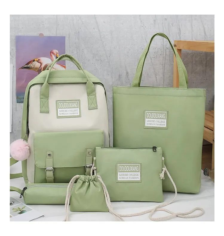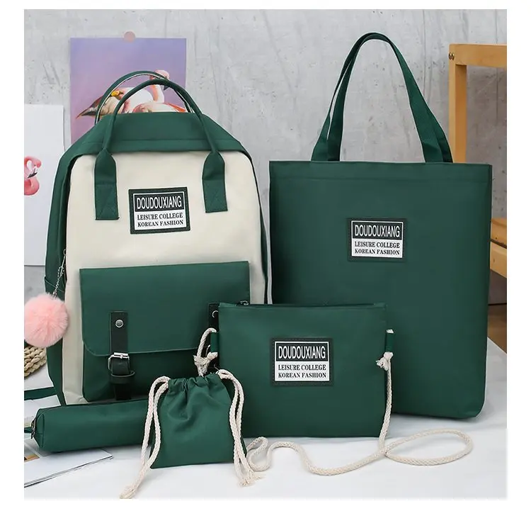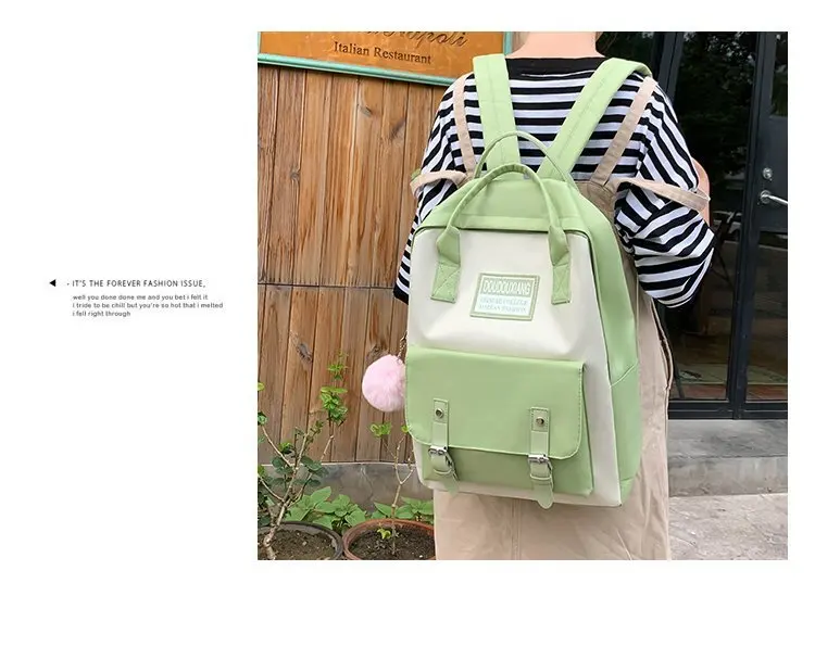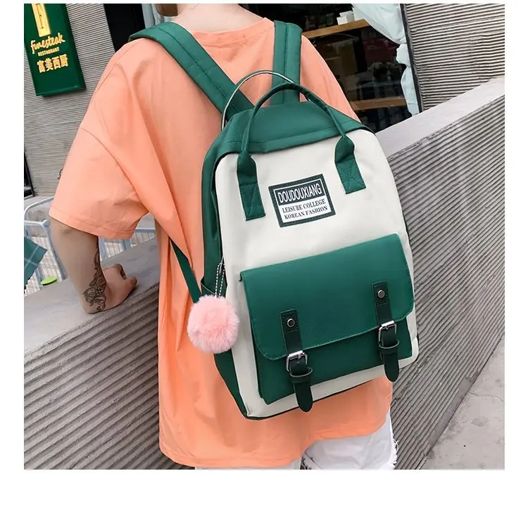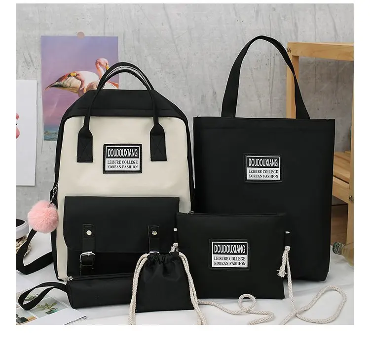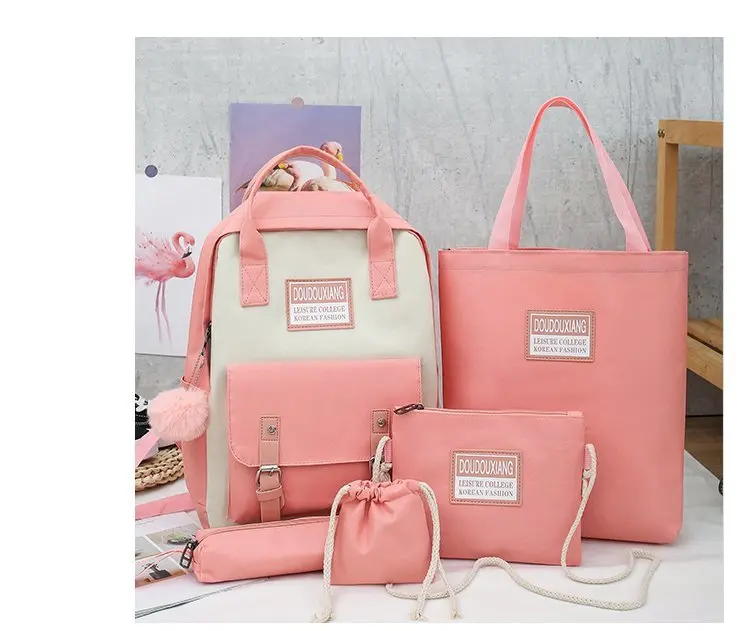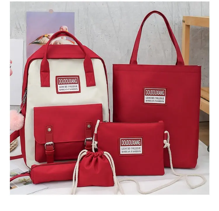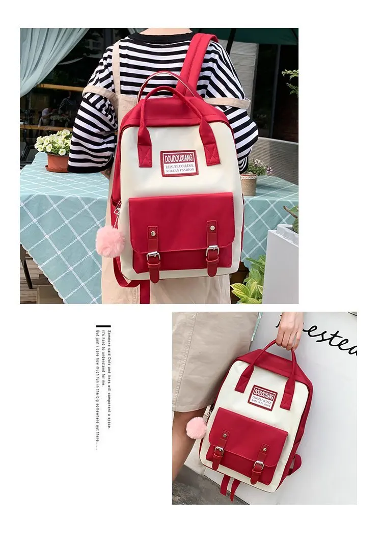 Features:School Bags for Teenage Girls Color Block Travel Backpack Large Capacity Student School Bag 5 Piece Set Bag