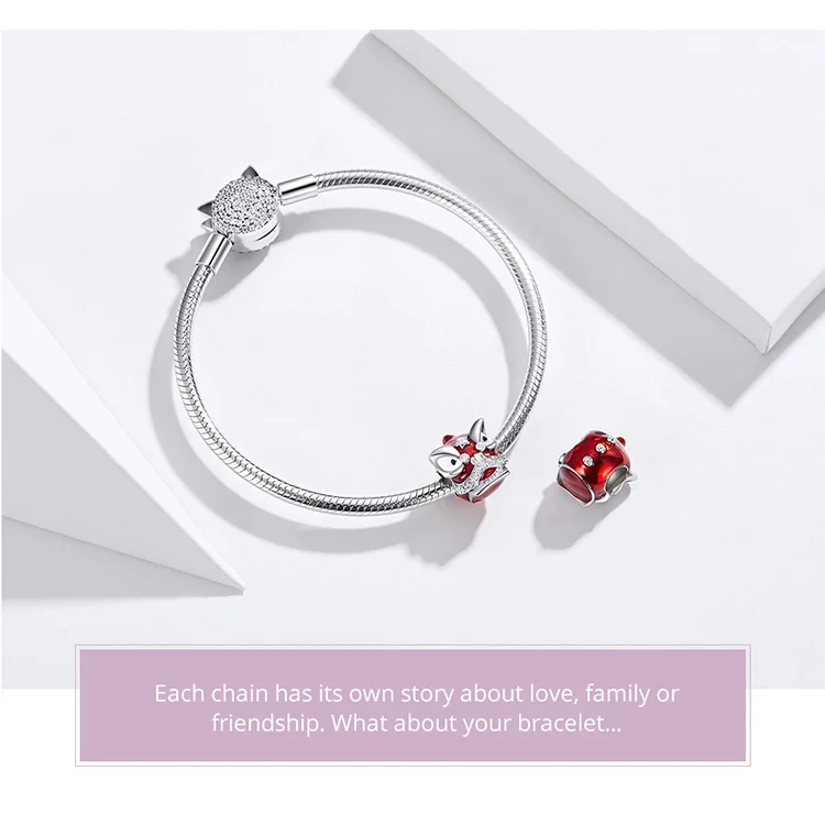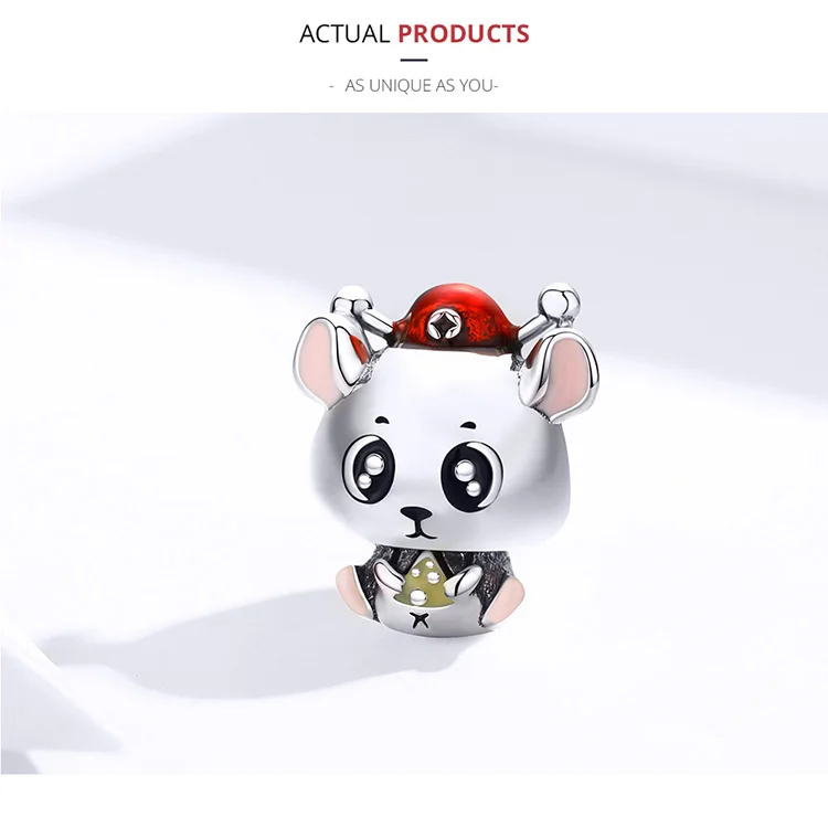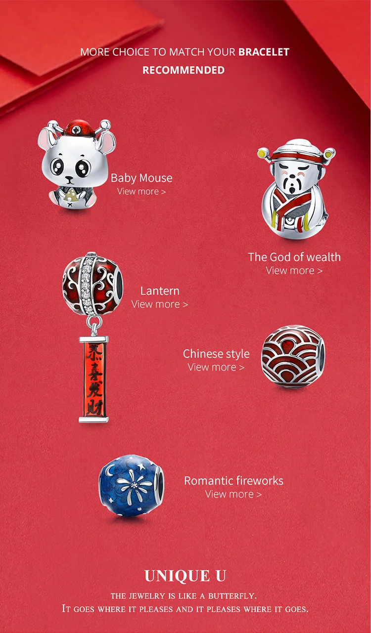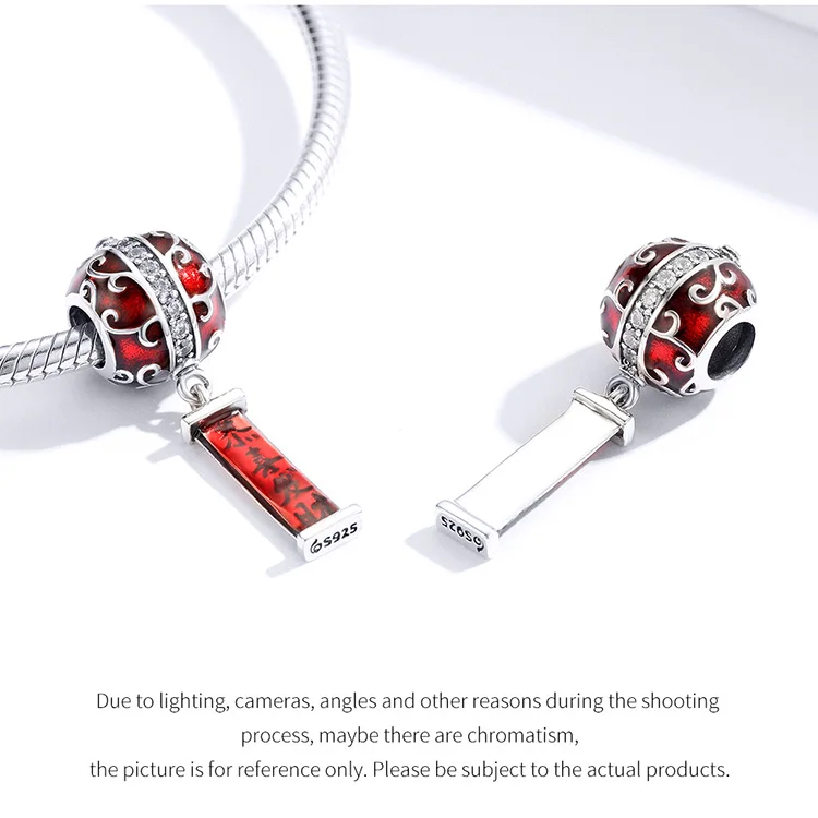 Chinese New Year Red DIY Beads BISAER 925 Sterling Silver lantern mouse Koi silver charms Beads fit Pandora Original Bracelet