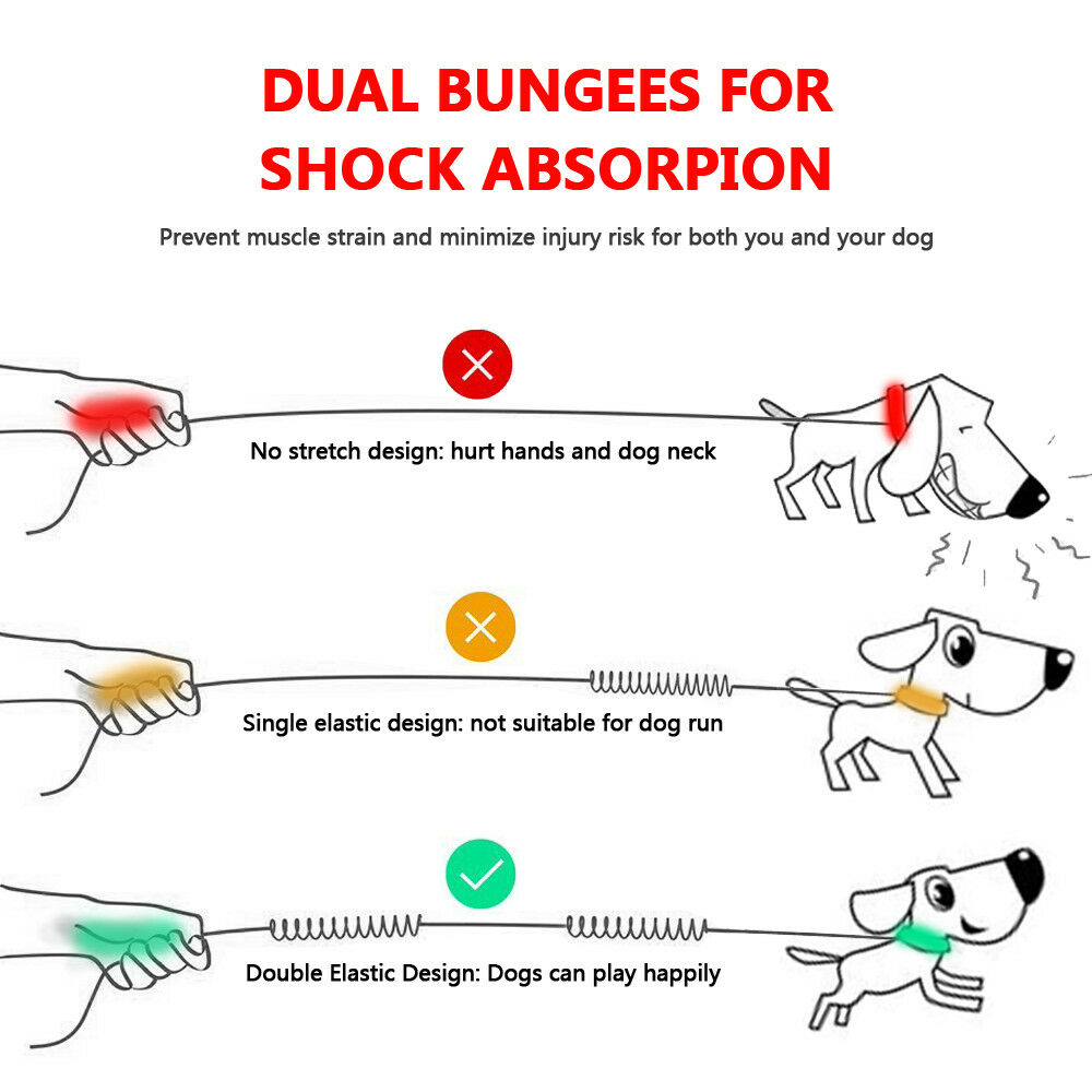 【SHOCK ABSORBING BUNGEE LEASH】This hands-free dog leash can absorb shock and pull force from dogs up to 150lb. With the handsfree leash being pulled, elastic bungee tension goes higher. It is a “stop pulling” warning, thus your dog will be gradually trained. The dog running leash will reduce stress and muscle strain on you and the dog. Your waist won’t get injured. Our waist dog leash is 51” and extends up to 76” that is long enough to provide adequate room, but short enough not to get in your way.