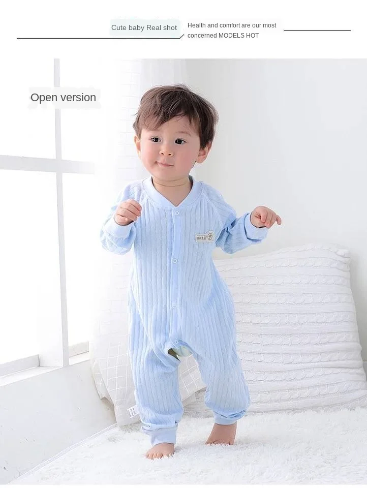 Hot-selling baby jumpsuit long-sleeved cotton baby spring and autumn summer day clothes thickened thin section newborn clothes 1 year old