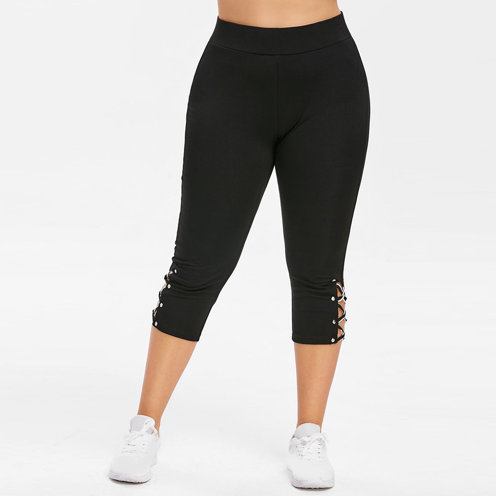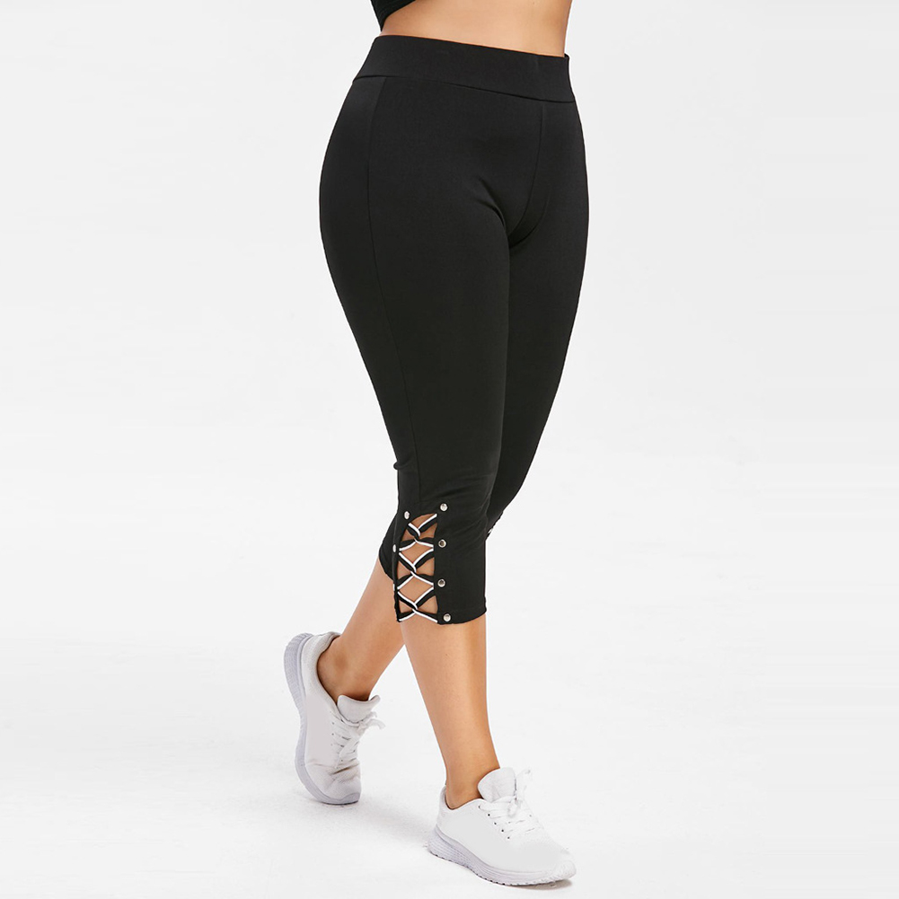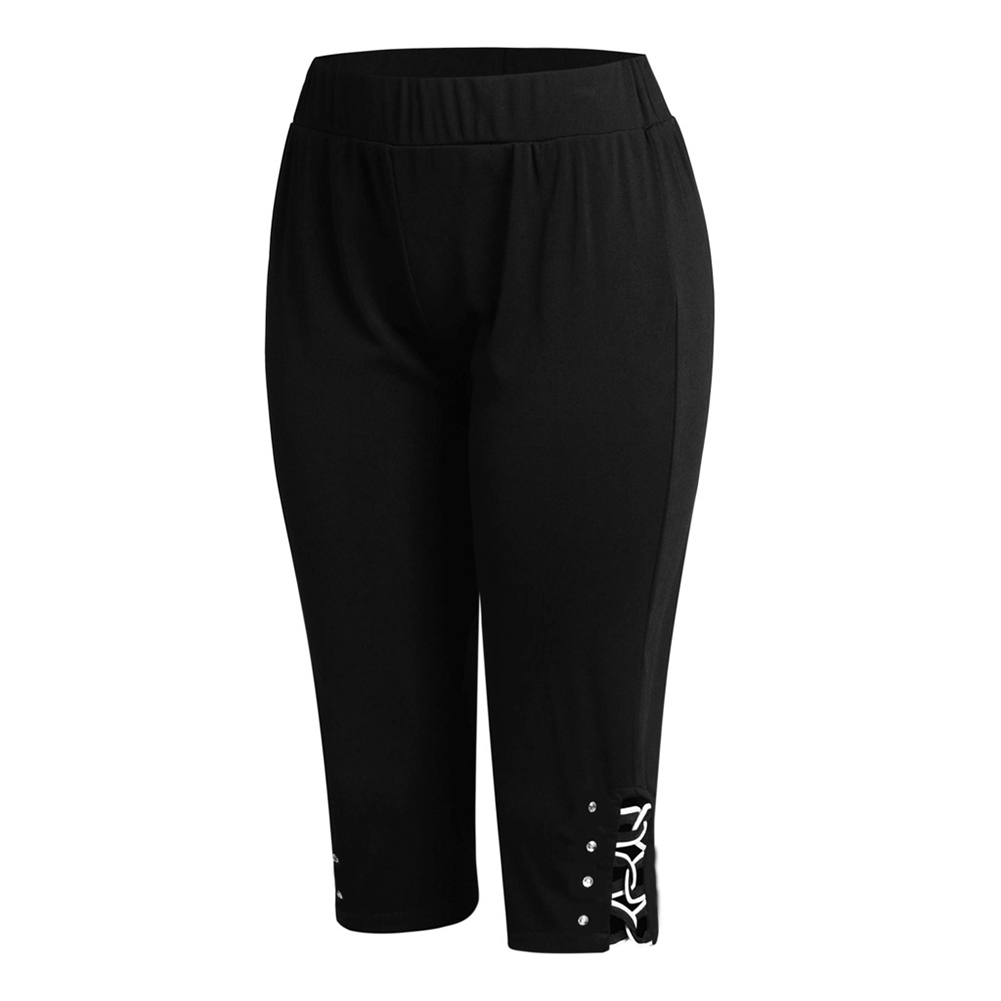 Women High Waist Cropped Trousers Pants Elastic Bandage Yoga Shorts Leggings