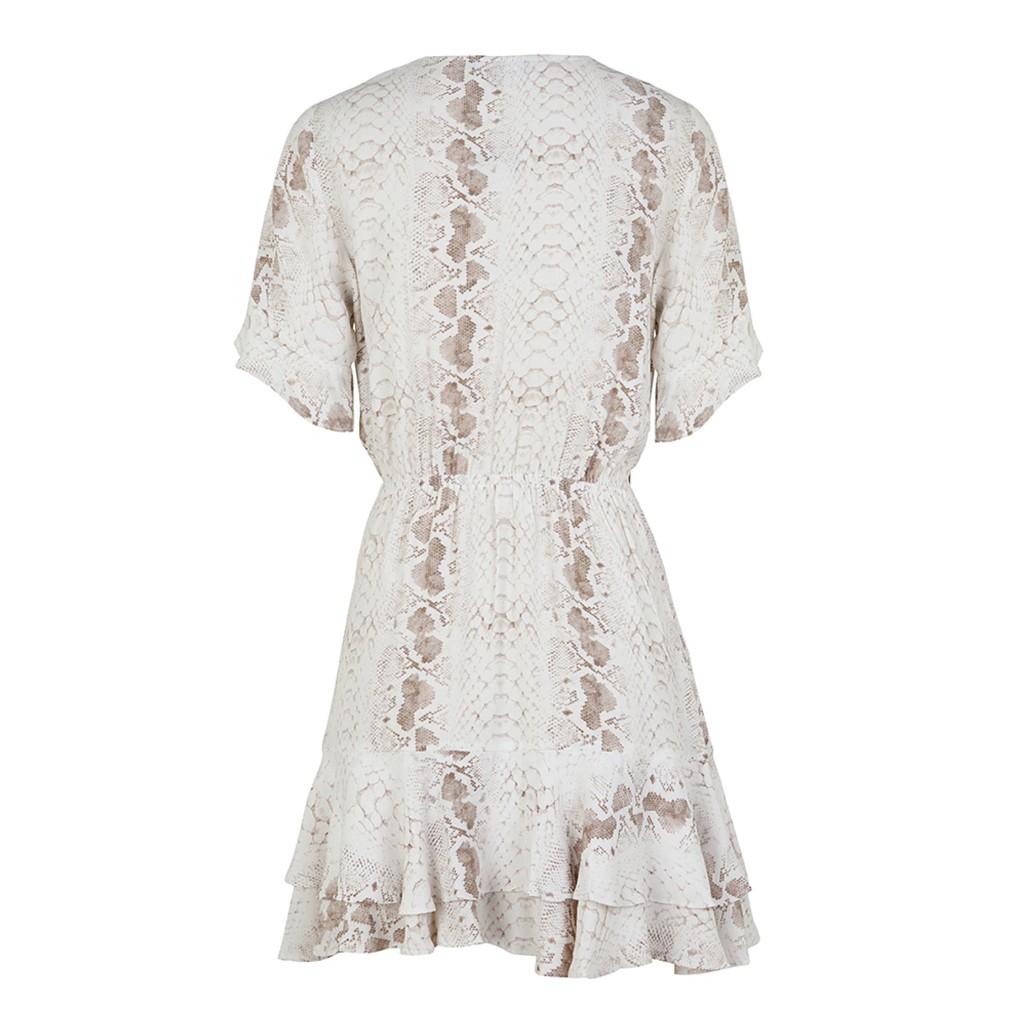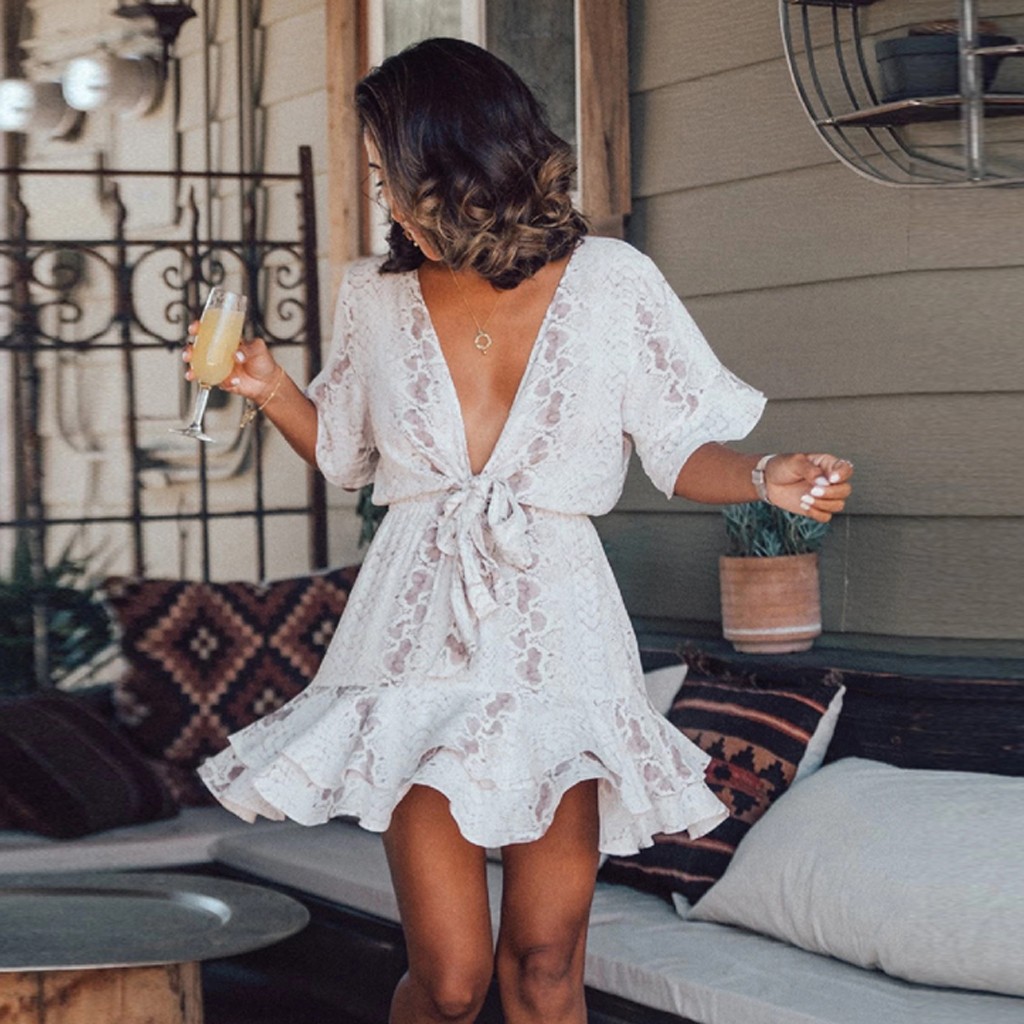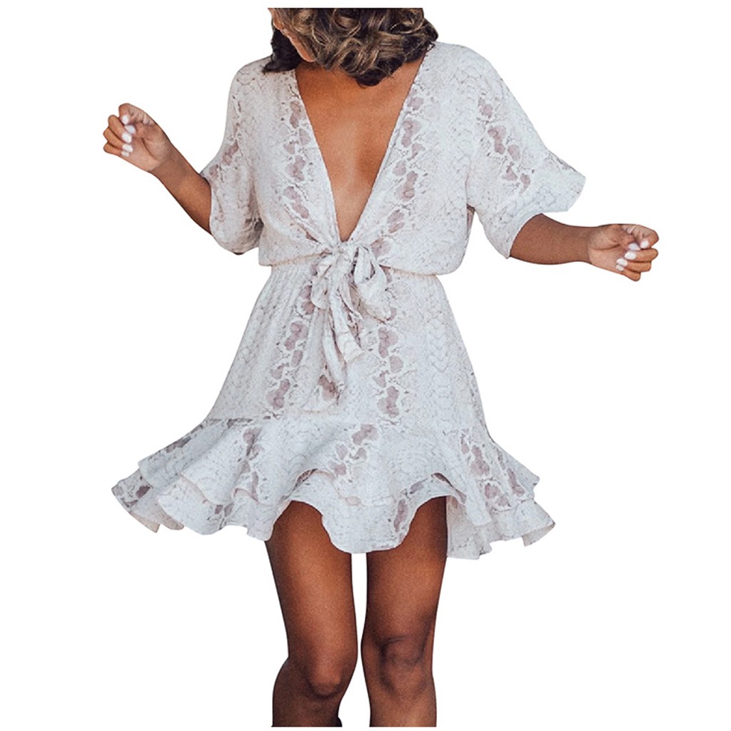 Women Sexy Sling Snack Print V Neck Tie Up Boho Ruffle Beach Party MIni Dress